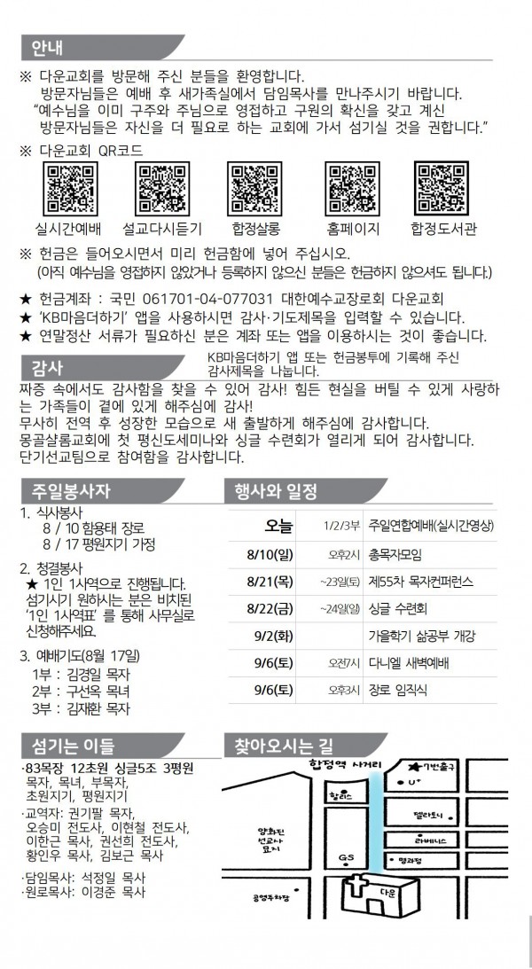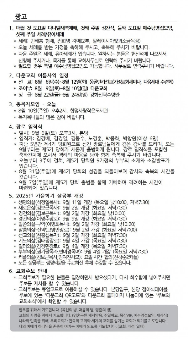 2025. 8. 10. 주보와 교회소식