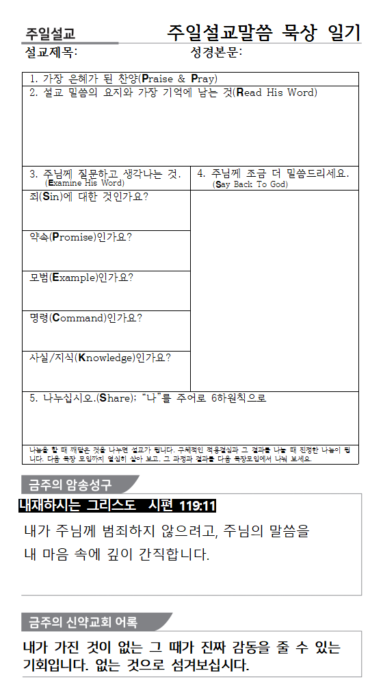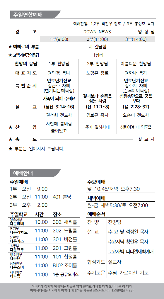 * 이번주 토요일 오전7시 다니엘새벽예배가 있습니다. 설교는 권선희 전도사(초등부)입니다.