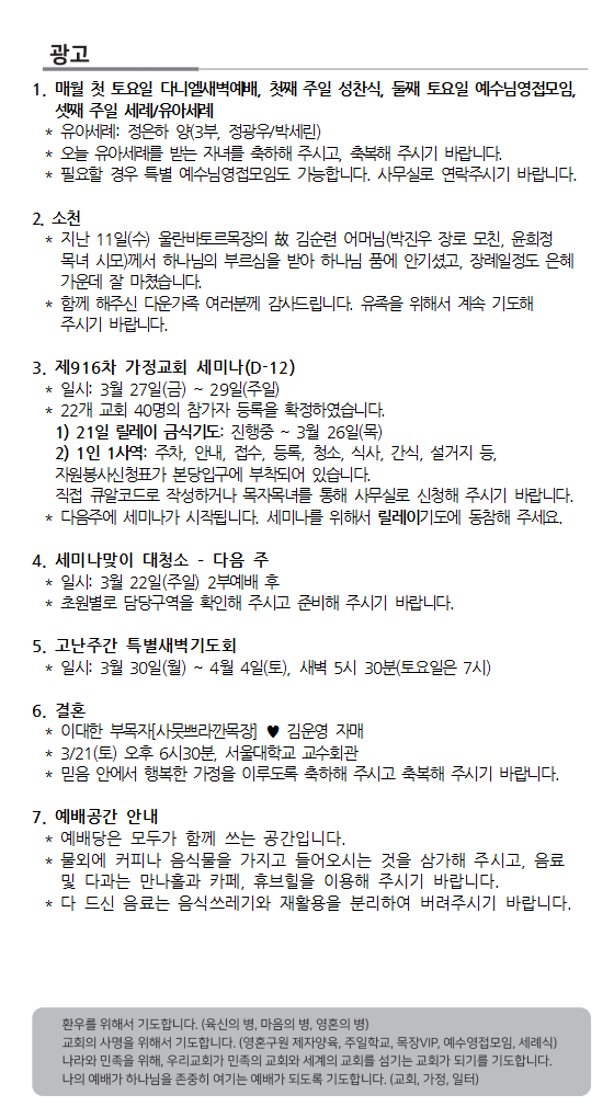 2026. 3. 15. 주보와 교회소식