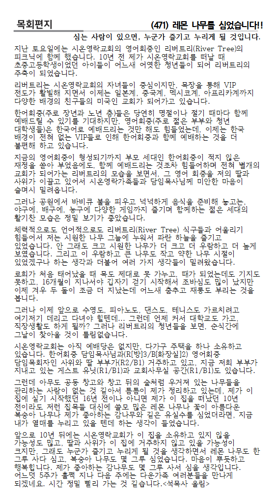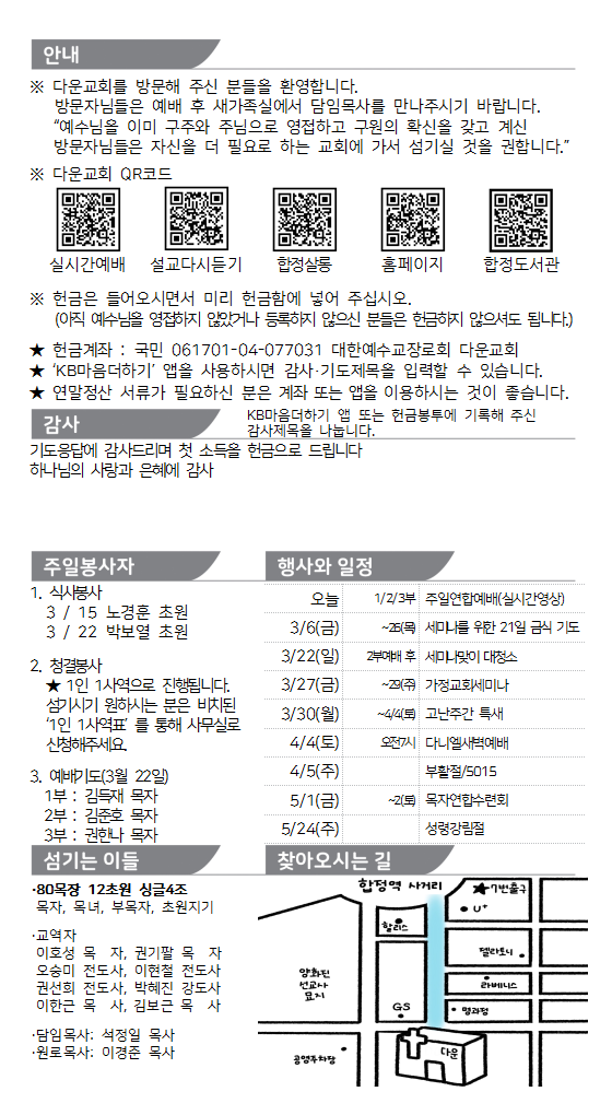 일시: 3월 22일(주일) 2부예배 후