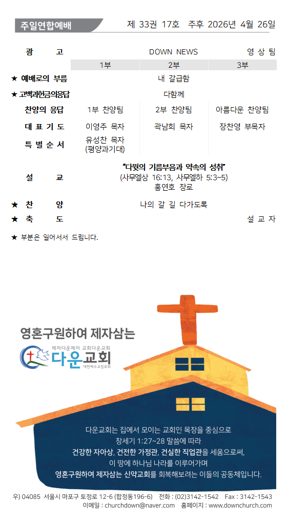 필요할 경우 특별 예수님영접모임도 가능합니다. 사무실로 연락주시기 바랍니다.