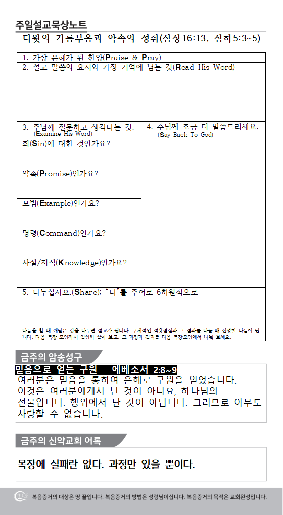2) 매 주일마다 10분씩 통성기도를 합니다.
